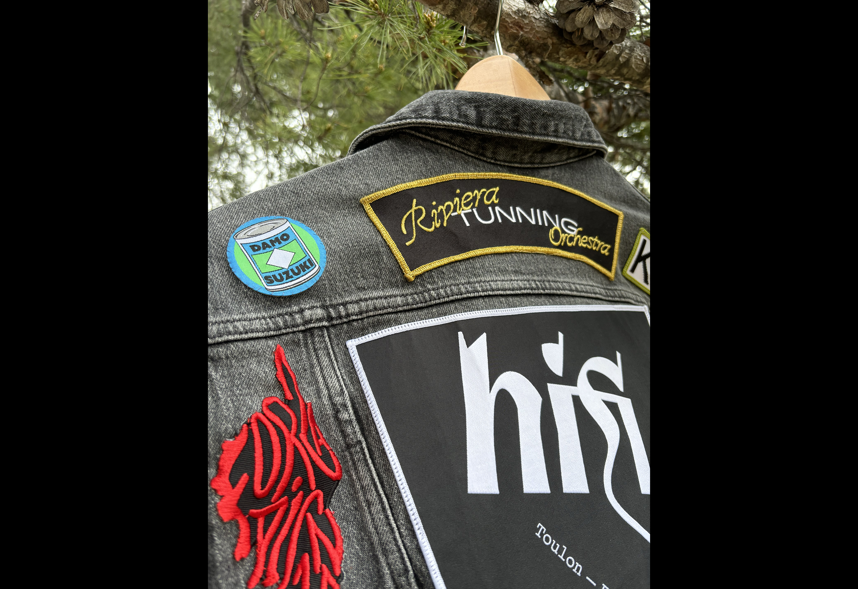 Élément fondateur du look metal, la veste à patches ou battle jacket est plus qu’une simple pièce vestimentaire : il s’agit d’une armure, un signe de ralliement et une formidable déclaration d’amour. C’est en s’inspirant de ce symbole d’appartenance à une famille que j’ai créé une série de patches en se basant sur les collaborations du collectif toulonnais Hifiklub, évoquant ainsi leurs liens artistiques. Autant de dessins, illustrations, caricatures, métaphores visuelles ou typographies transposés sur des vestes en jean. Ces productions sont exposées dans le cadre de l’exposition collective ECHO au Metaxu (Toulon) et à la Galerie Territoires Partagés (Marseille).